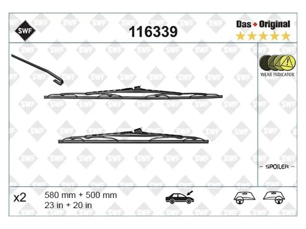 Silecek X5:E53 - W168 Vaneo414 Ön; Spoilerli 60cm E53:Sol W168 Vaneo414:Sağ