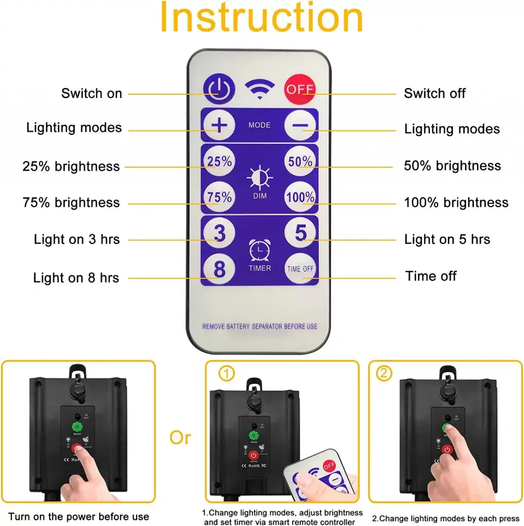 4 mod (sürekli ışık, yanıp sönen, hızlı yanıp sönen, yanıp sönen) + uzaktan kumanda +USB şarjı